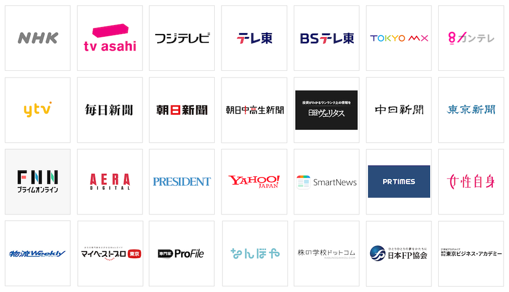 NHK 土曜ドラマ 3000万 家計考証|テレビ朝日 グッド!モーニング|フジテレビ LIVE選挙サンデー|テレビ東京 ありえへん∞世界|BSテレビ東京 マネーのまなび|TOKYO MX 堀潤激論サミット|TOKYO MX 日曜はカラフル2 天使篇|関西テレビ 旬感LIVE とれたてっ!|読売テレビ 朝生ワイド す・またん!|毎日新聞|毎日新聞デジタル|朝日新聞|中日新聞|中日新聞Web|東京新聞|東京新聞Tokyo Web|朝日中高生新聞|朝日学生新聞デジタルプラス|日経ヴェリタス